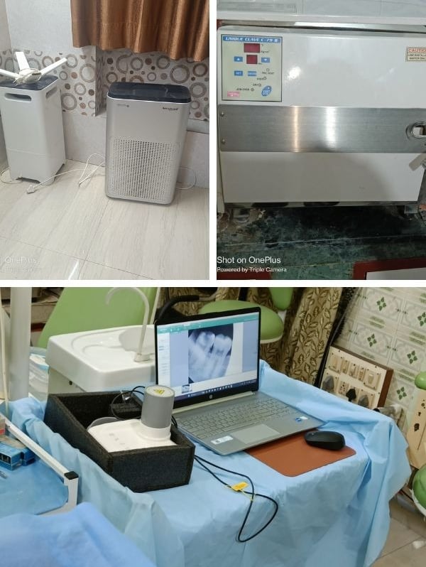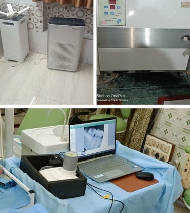 Our clinic is a state-of-the-art dental facility, equipped with the latest instruments and technology to provide you with the highest level of dental care. We place a strong emphasis on ensuring the safety and well-being of our patients by maintaining strict protocols for sterilization and clinic sanitization. Every instrument used in our treatments undergoes a thorough sterilization process, guaranteeing a clean and hygienic environment. Additionally, we offer in-house digital teeth X-rays, providing quick and accurate diagnostics for a range of dental conditions. Our clinic also takes pride in providing premium-quality dental crowns, made to international standards, with a warranty of 10 to 15 years. This ensures that our patients receive long-lasting, reliable results, while maintaining the highest standards of dental care throughout their treatment journey.